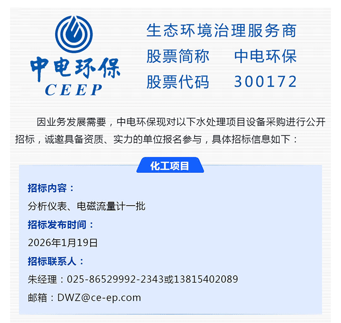 中電環(huán)保股份有限公司是南京市首家環(huán)保上市公司(股票簡稱:中電環(huán)保,股票代碼:300172),南京環(huán)保產(chǎn)業(yè)協(xié)會會長單位,國家級聯(lián)盟理事長單位,是生態(tài)環(huán)境治理服務(wù)商,主營(3+1):水務(wù)、固危廢、煙氣治理及產(chǎn)業(yè)創(chuàng)新平臺,包括:工業(yè)水處理、污水處理及水環(huán)境綜合治理;固危廢土壤、污泥餐廚垃圾處理;煙氣及VOCS治理;智慧環(huán)保;高端裝備等。
